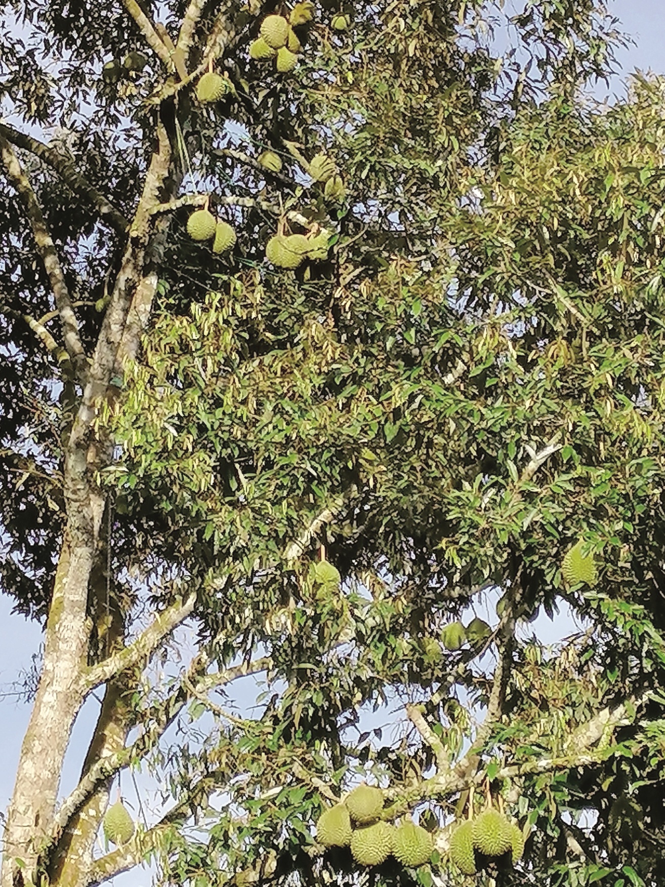 当开始结果累累的榴梿树枝干不胜负荷时,萧氏就会嘱咐工人们采用“吊枝法”,即是运用绳子把结果太多的枝干“吊绑”到榴梿树的主干。