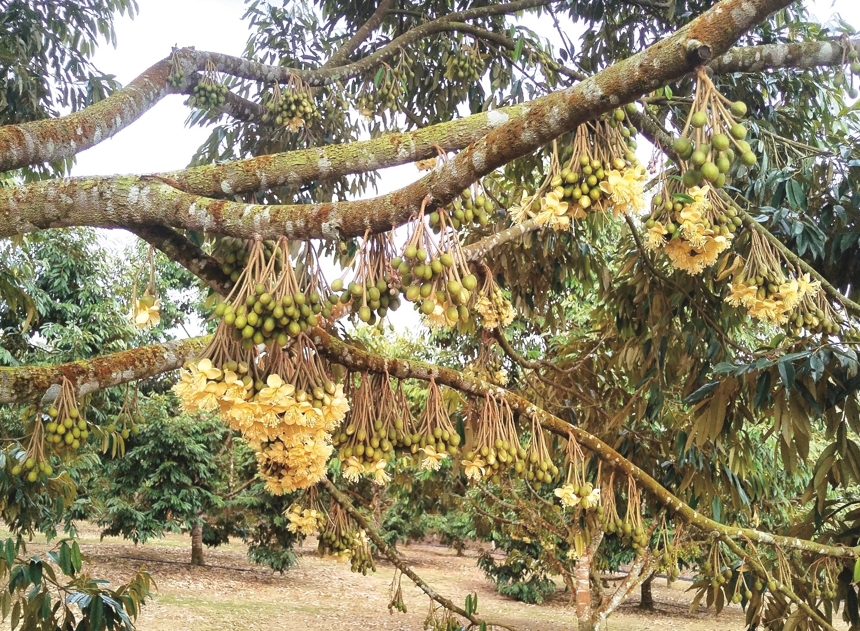 5月初采访时,萧秀钦果园内的S17品种榴梿正值开花。