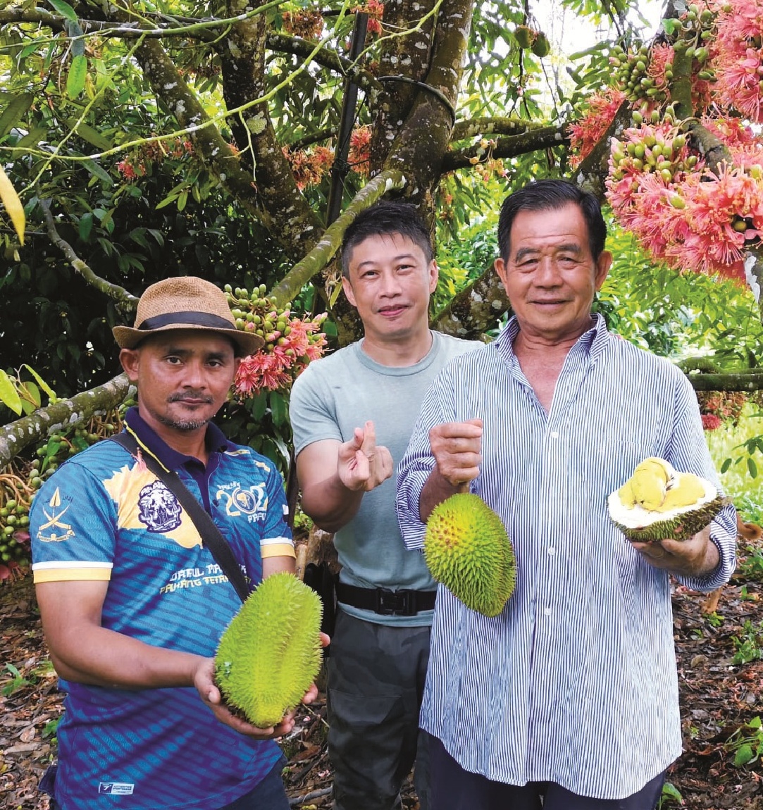 Berchang King果壳绿刺尖锐,果肉光滑,奶黄色泽,口感丝滑如奶油,味道偏苦微甜,并带有浓郁的酒香味。图左起为:Ahmad Mamat、罗福强和雷天养。