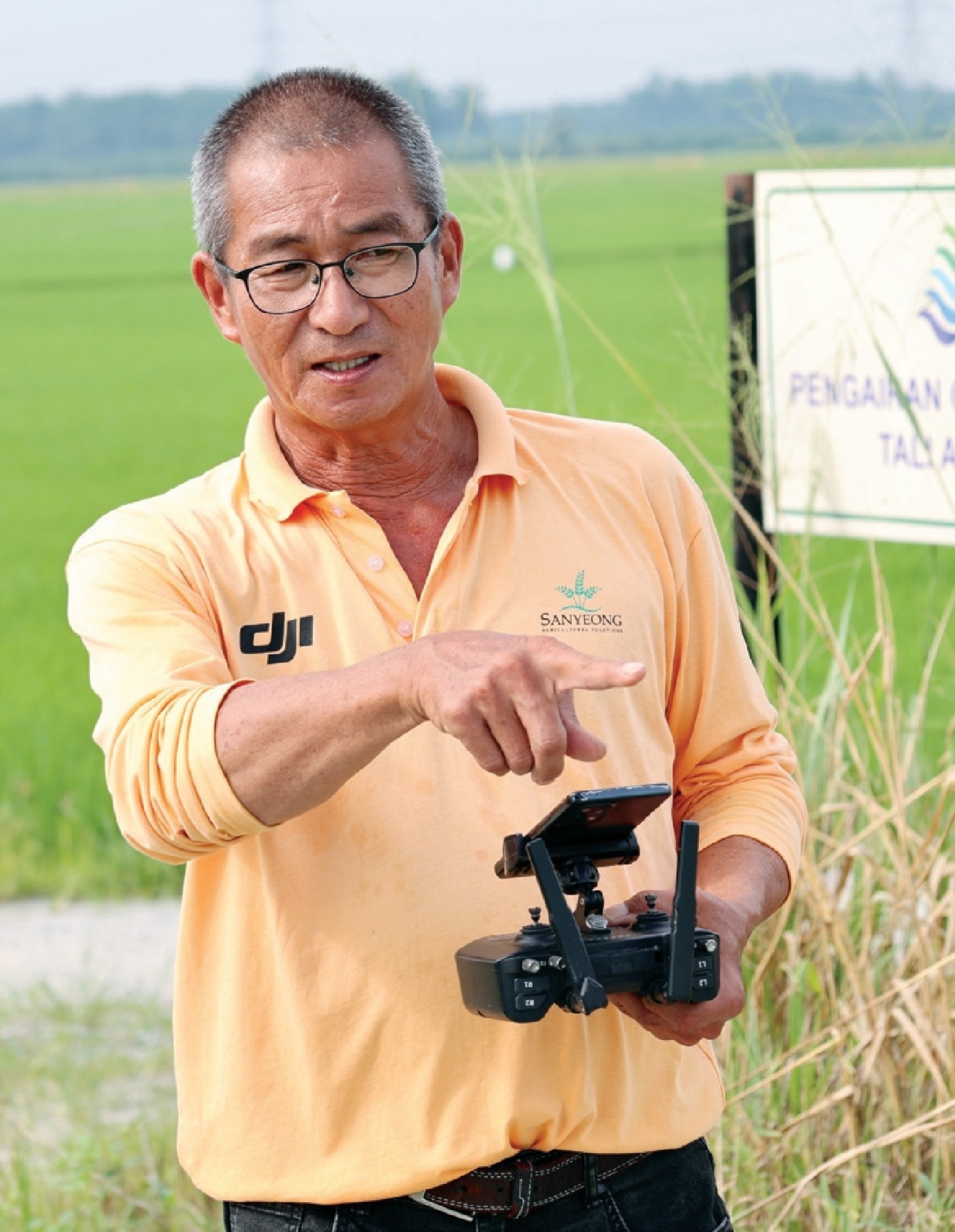 现在水闸已有20台无人机,可见大多数稻农能够接受这项新科技。回想引进初期,很多人采取观望态度,质疑成效。