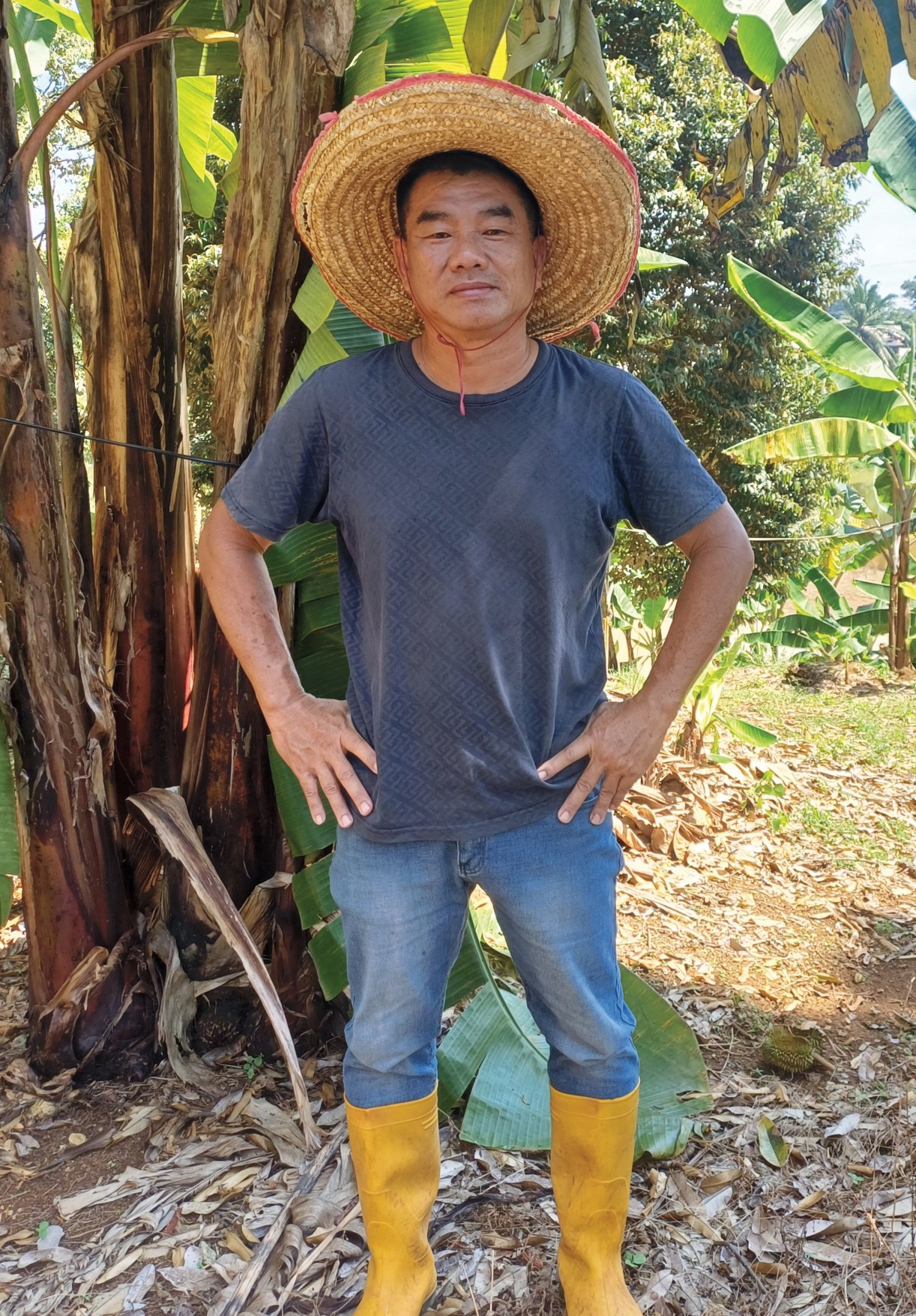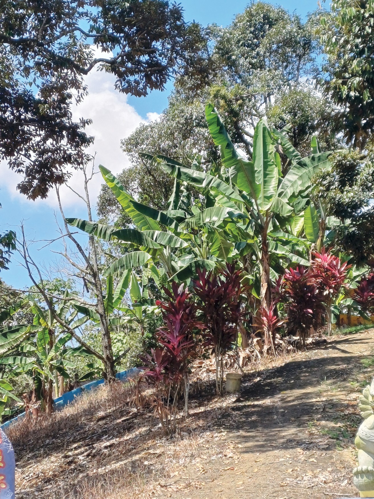 丘福荣善用空间,在香蕉树丛间尝试间种榴梿,增加收益。