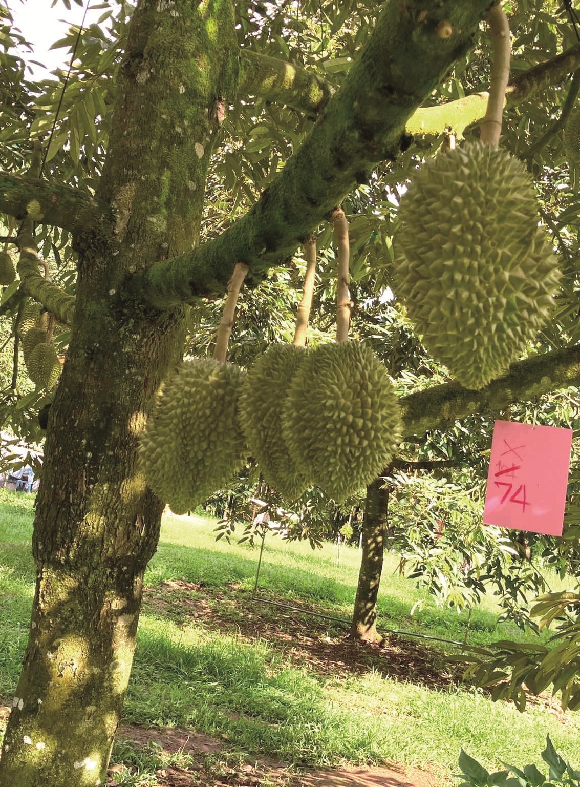 Phi Kiew对榴梿种植一窍不通,却决定将8莱的油棕园改种金枕头榴梿。她向农业专家学习改善土壤和肥培技术,成功解决了油棕遗留的土壤酸化问题。现在,园内的180棵金枕头榴梿树已达8年树龄,年产量超过40公吨,且所有榴梿果实均为达到出口标准的A果与B果。凭借这些优异的成绩,她一跃成为当地榴梿种植的“达人”,而她的果园也成为了当地知名的“示范园”……