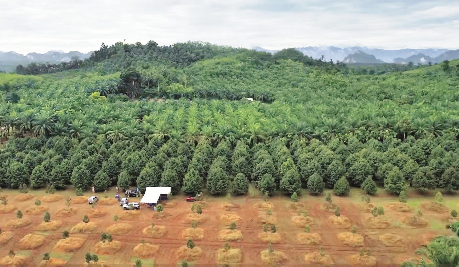 在泰国甲米府Plai Phraya区,一位油棕小园主——Phi Kiew将一片8莱的棕油树砍伐后改种榴梿,经过8年的坚持与努力,终于换来丰硕的成果,取得高达500万泰铢的收益,是过去种植油棕的50倍。