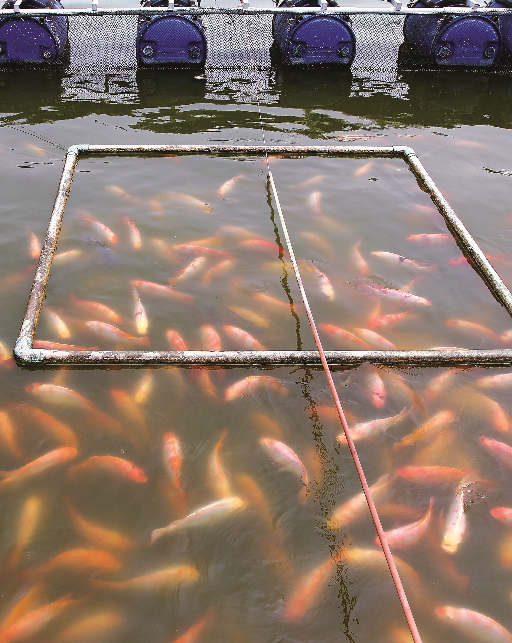基于网箱罗非鱼生活在自然环境中,养殖户应定期检测水体的溶氧、pH、氨氮等指标,遇到高温或阴雨天气需加强水体增氧。若有条件,养殖户应每月清洗网箱1~2次,清除附着物及残饵,以确保水流通畅和鱼只健康。