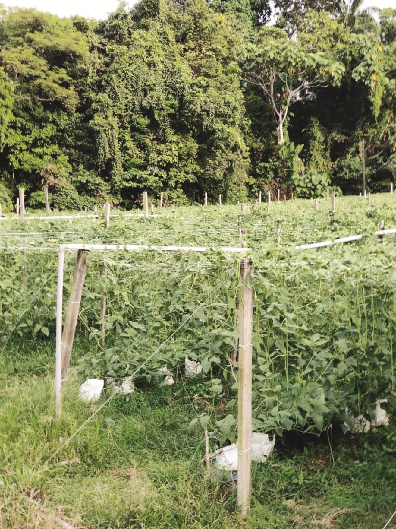 吴国忠来自Home Garden Agro Group Sdn Bhd ,目前在关丹栽种长豆。他选择种植长青长豆,不仅因为它容易发芽、无需特别催芽,更因其耐热、适合全年直接播种在地里,不久便能爬满整座支架,长采长有。他之所以获得丰盛的收获,是因为舍得投资使用火山泥。