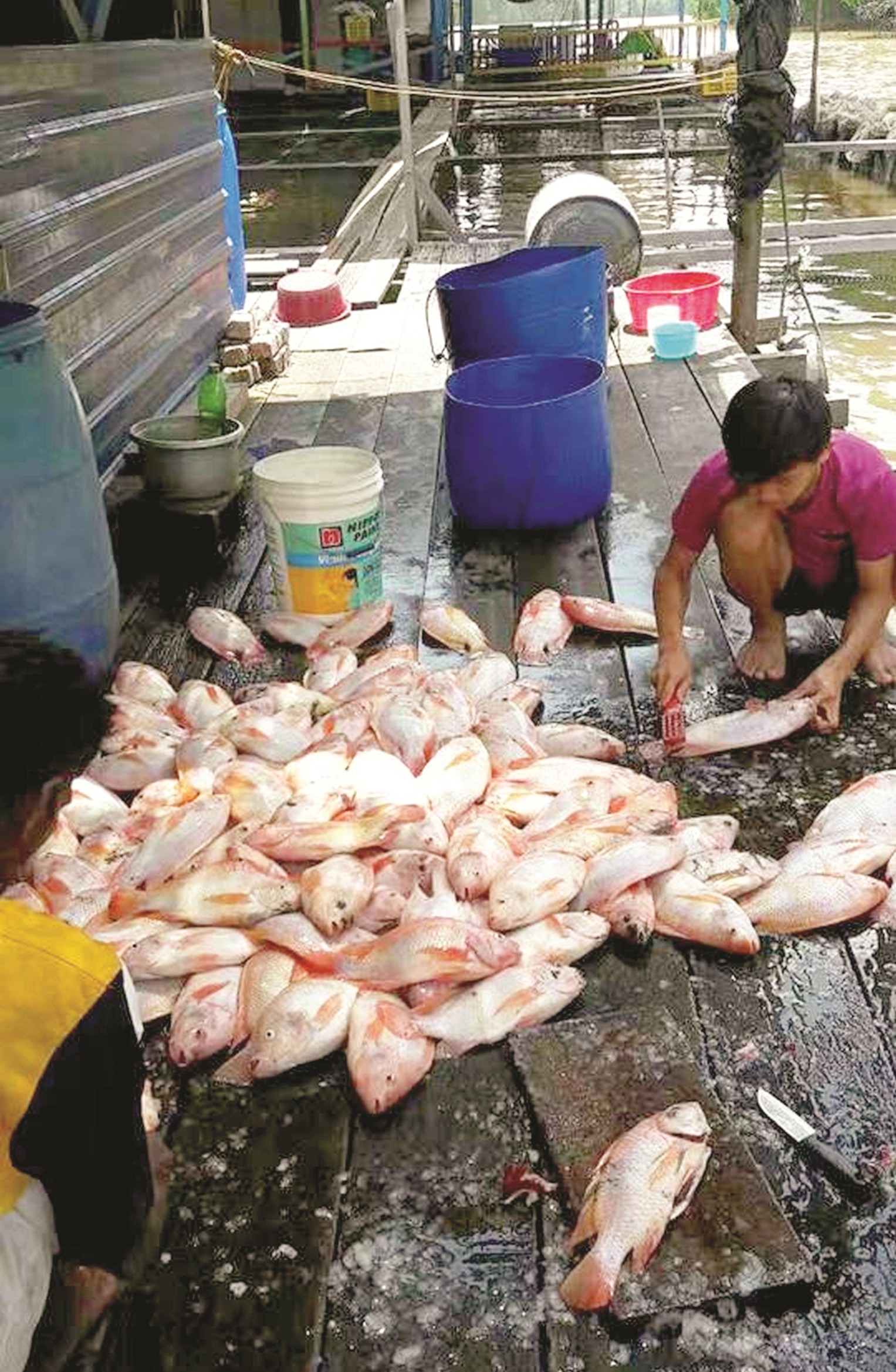 鱼场养殖约2万条红罗非鱼,另饲有少量石斑与白须公作为点缀。红罗非鱼养殖周期为6~7个月,重达500~700克即收成,再由当地鱼商送往市场销售。