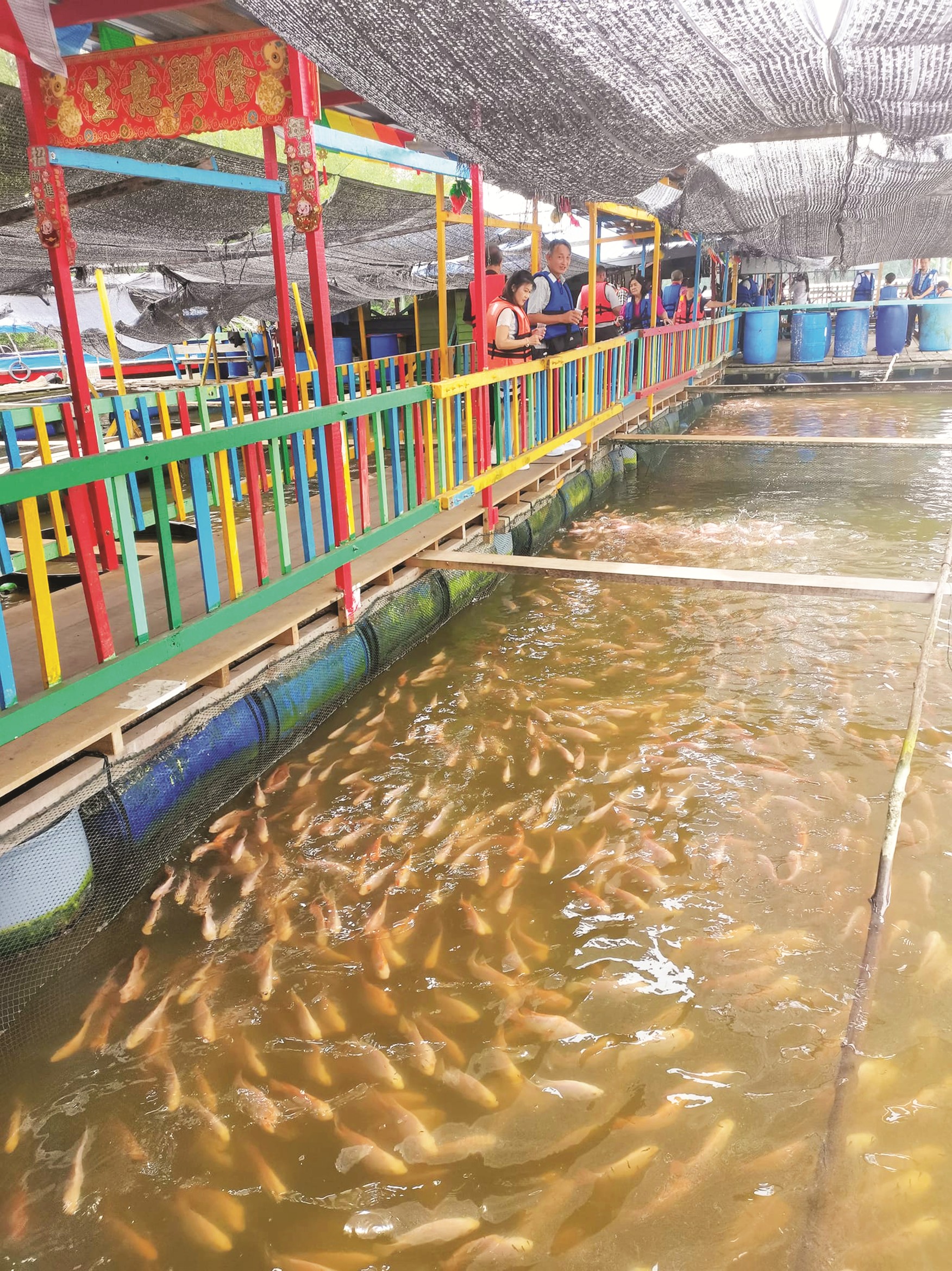 为此,王彬于2014年投资8万令吉,在十八丁河口建设第一期养鱼场,作为游船配套的新亮点。随着游客增加,他陆续扩建设备,现今鱼场占地超过200尺长、100尺宽,共设42口网箱,并增建为两层楼结构。