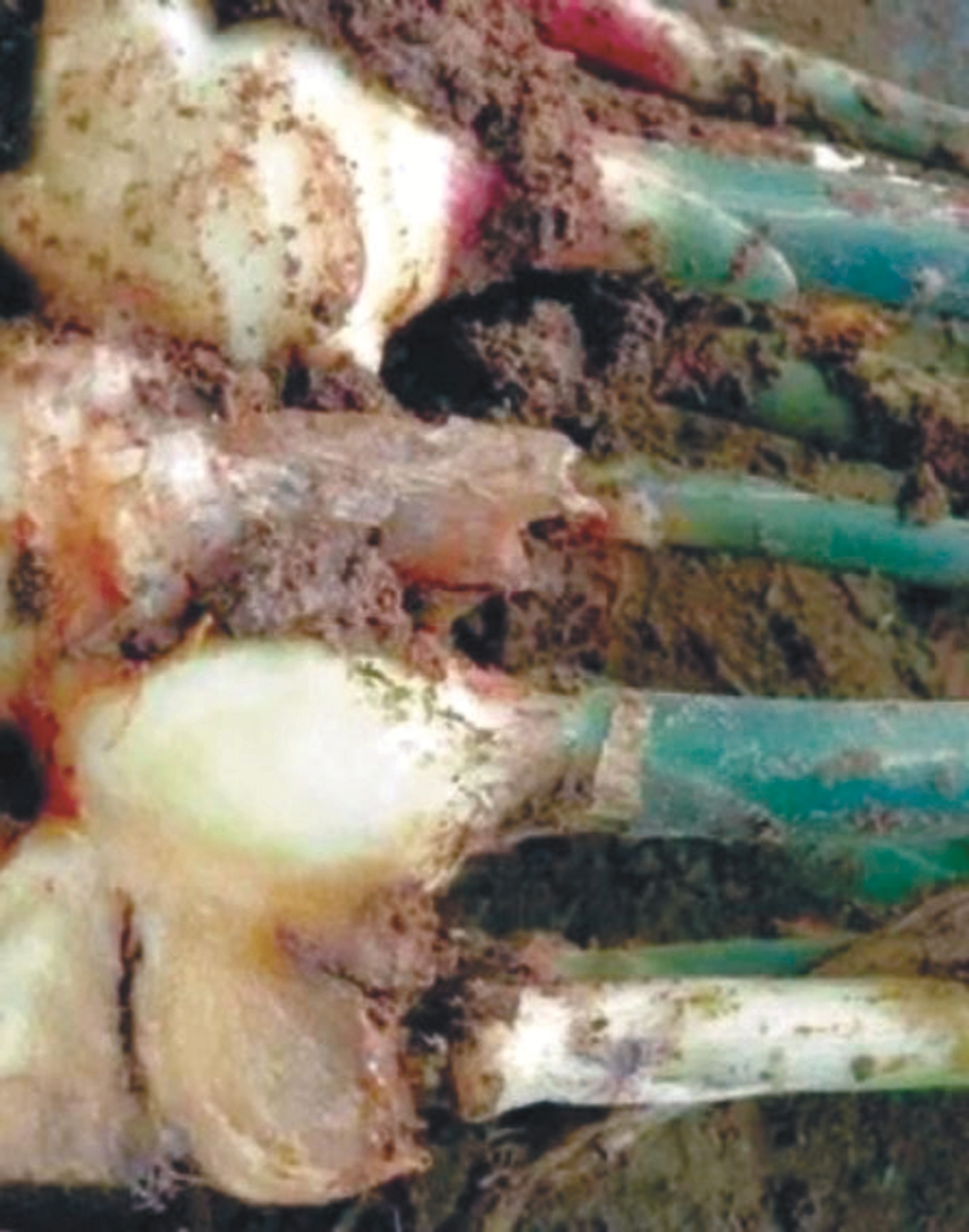 嫩姜最怕的“姜瘟”(Rhizome rot)是一种地下真菌感染,通常无声无息地从根部开始腐烂。等你发现地面叶子泛黄、枯萎,地下可能早已成片坏死。尤其是连日下雨、田里积水时最危险。