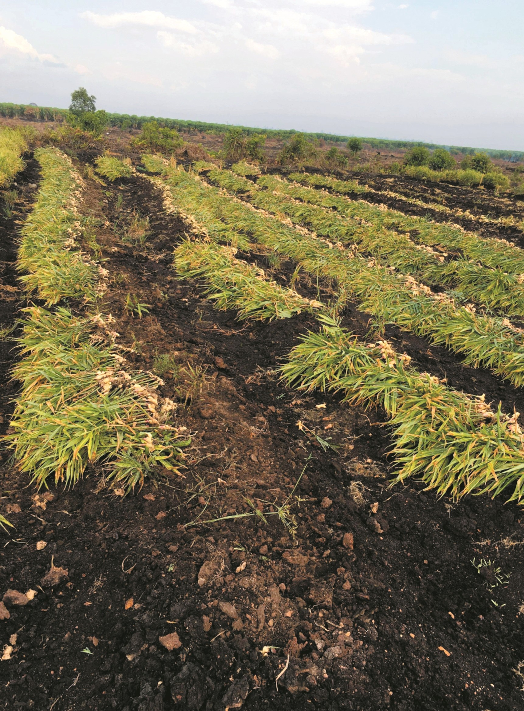 洪运动选用健康、饱满、有芽眼的姜块作为种苗,通常会在雨季来临的几个月前开始准备。他把姜块切成手指大小,每块保留1~2个芽点,晒上一、两天,去除水分后再下田播种。
