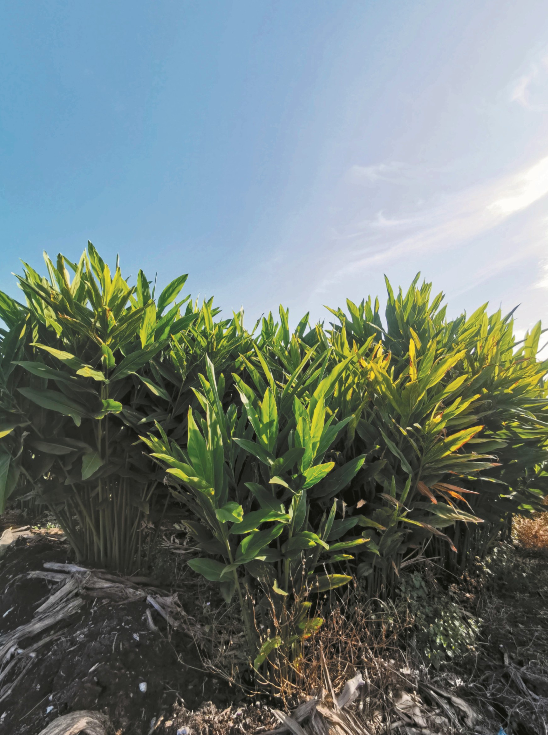 南姜种植需严防根结线虫、地下螟虫及叶枯病。图为长势旺盛的姜株,高度已超过成人。
