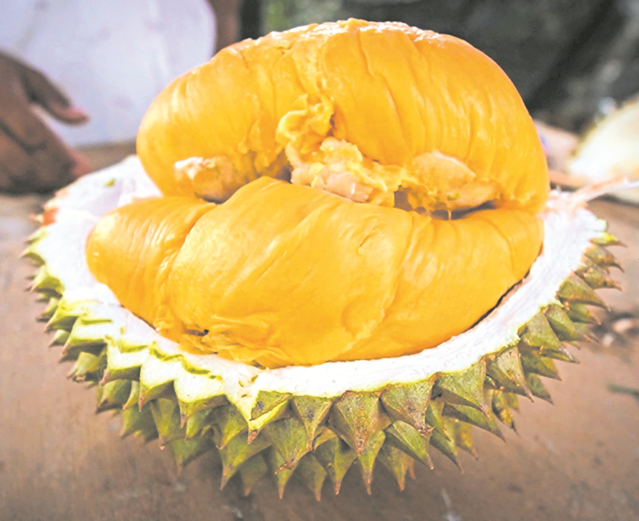● 色泽:果肉呈奶油色、黄色或橙色为高品质榴梿的视觉标记。